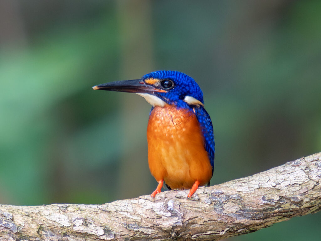ルリカワセミは、普段は暗い場所に身を潜めているので、動きがないと見つけるのは難しいです。